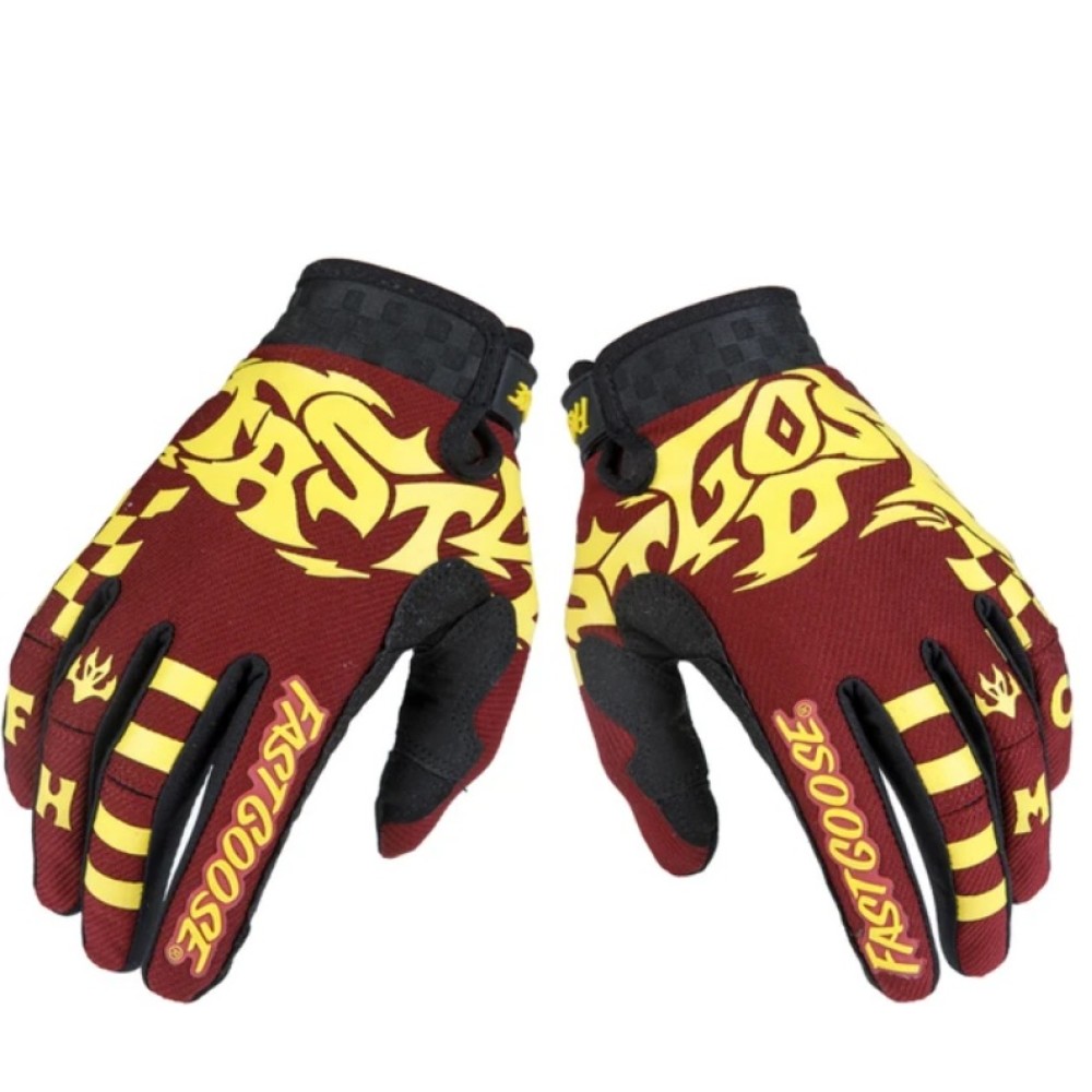 Перчатки кроссовые FASTGOOSE с надписью Fast (бордово-желтые)