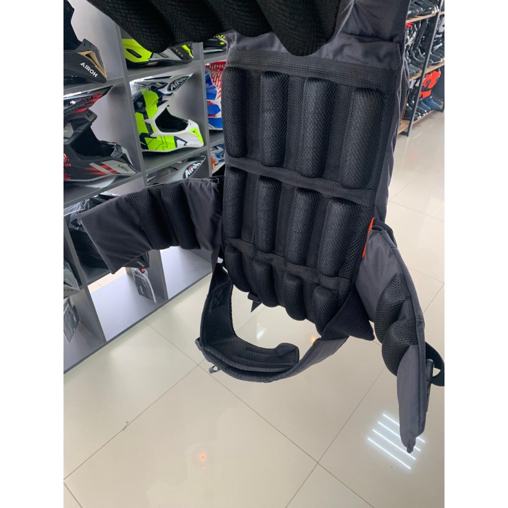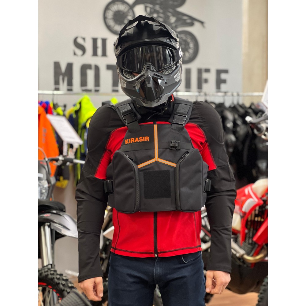 Инновационная защита тела KIRASIR. Панцирь с интегрированным рюкзаком для гидратора, батончиков, инструмента и мелочевки. В конструкции используется гибкая защита Sas Tec. Уровень защиты Level 2, как у лучших зарубежных аналогов. Главной особенностью защиты, можно назвать высочайшее удобство - ничего не тянет и не сковывает движения; высокая скорость снимания и одевания (панцирь и рюкзак, это одно целое); вентиляция не имеющая аналогов в мире в сфере защитной мотоэкипировки.