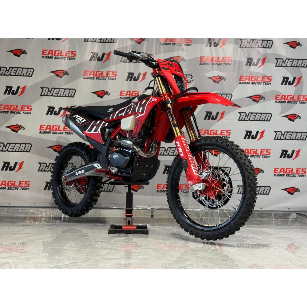AJERRA SAGAI A10 - полноразмерный спортивный эндуро мотоцикл построенный на базе K10 рамы (реплика KTM 24 года) в стилистике Gas-Gas 24г, укомплектованный новейшим 4х клапанным движком воздушного охлаждения Loncin YB300H 176 FMN.