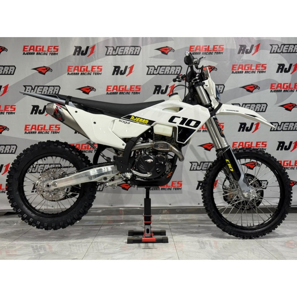 AJERRA SAGAI C10 - полноразмерный спортивный эндуро мотоцикл построенный на базе K10 рамы (реплика KTM 24 года) в стилистике Husqvarna 24г, укомплектованный новейшим 4х клапанным движком воздушного охлаждения Loncin YB300H 176 FMN.