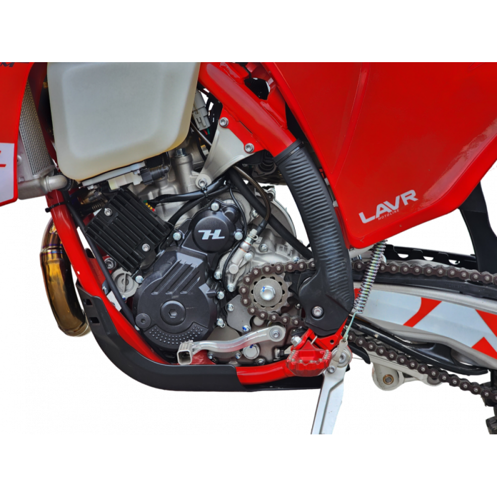 Подвеска HTW T10 с 48-миллиметровыми перевернутыми вилками закрытого картриджа и прогрессивной характеристикой гарантирует идеальную управляемость. Титановая выхлопная система, траверсы CNC AJ1 двойного охвата и 360-градусная защита перьев вилки демонстрируют внимание к деталям.