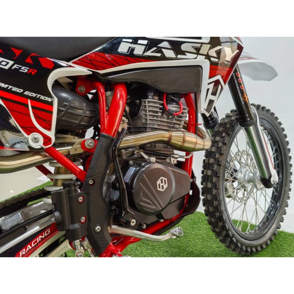 Для истинных ценителей мотоспорта компания Hasky представляет специальную версию своего флагмана – F5 Racing Limited Edition. Этот среднеразмерный эндуро-байк с колесной формулой 21/18 дюймов создан для тех, кто требует от техники максимальной отдачи и надежности в экстремальных условиях.