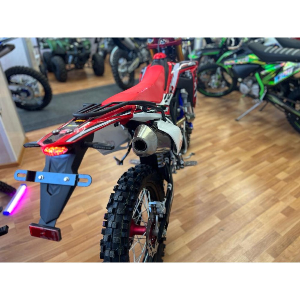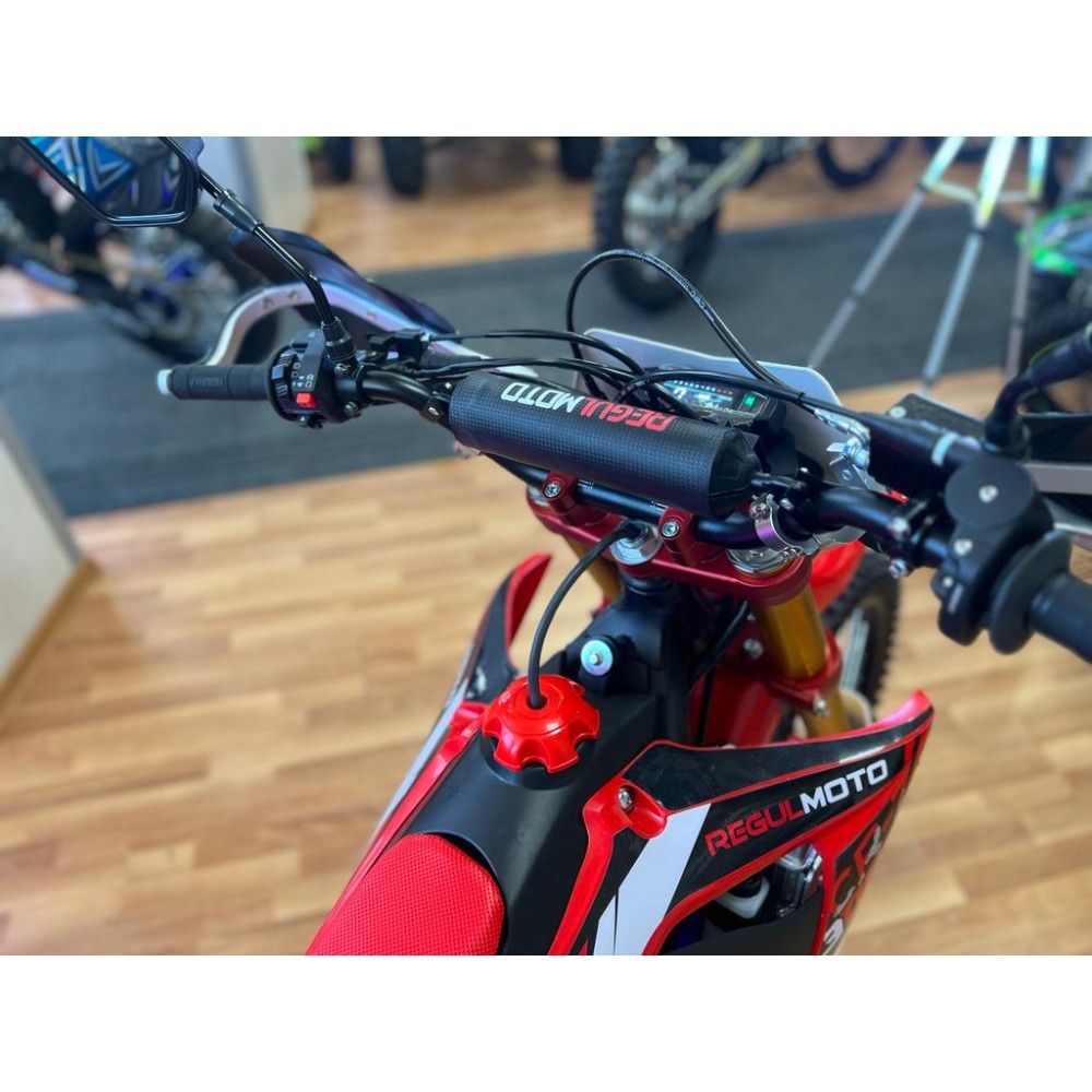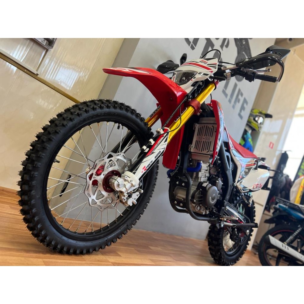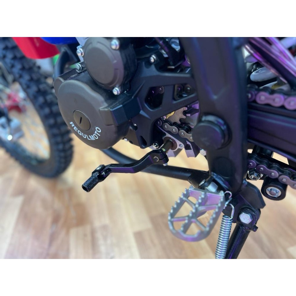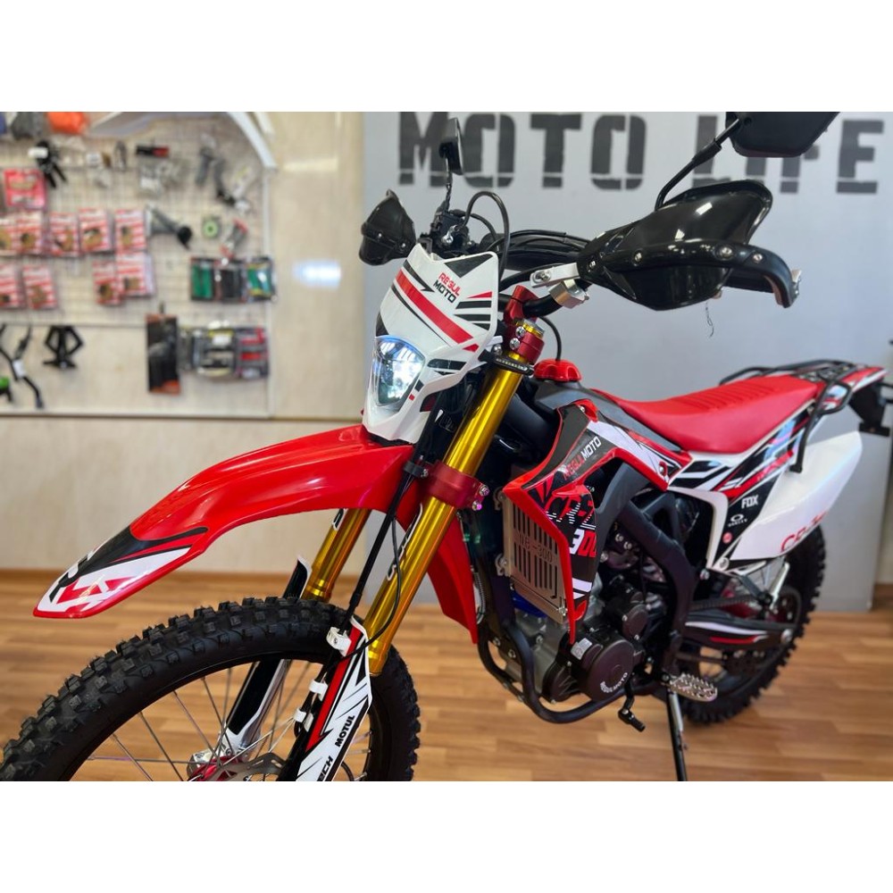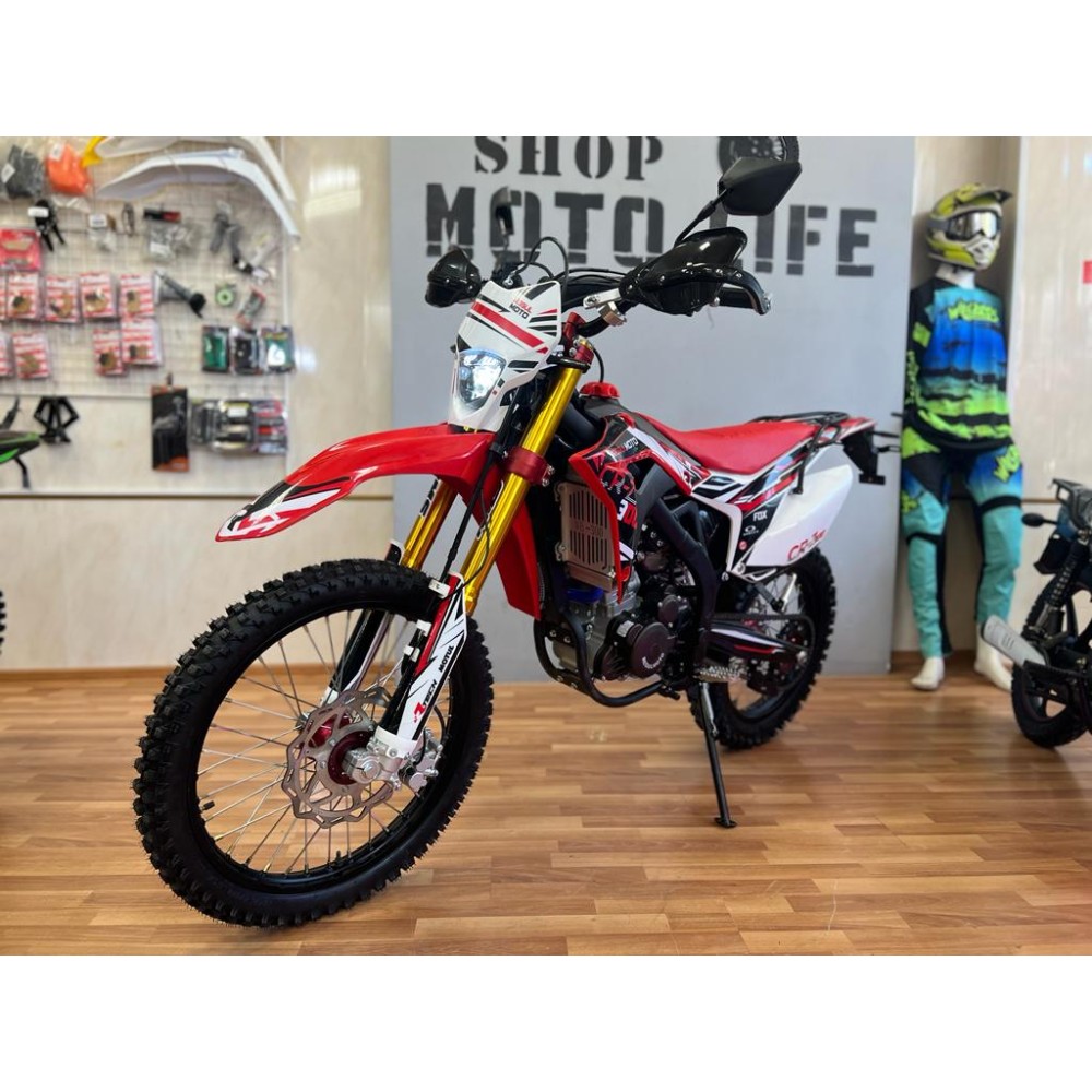 Regulmoto CR-Z 350 - полноразмерный эндуро мотоцикл двойного назначения с ПТС. Обновленный четырехклапанный двигатель 174MN с "косой" головкой, мощностью 30л.с.. Мощная полудуплексная рама. Полностью регулируемая подвеска. Традиционное качество от компании Regulmoto и внимание к деталям, например качественная сальниковая цепь, руль IGP Twinwall, карбюратор Nibbi PWK34 и т.д. Мотоцикл максимально универсальный и отлично подойдет, как для туристических поездок, так и для спортивных. Техника с ПТС и подходит для дорог общего пользования.