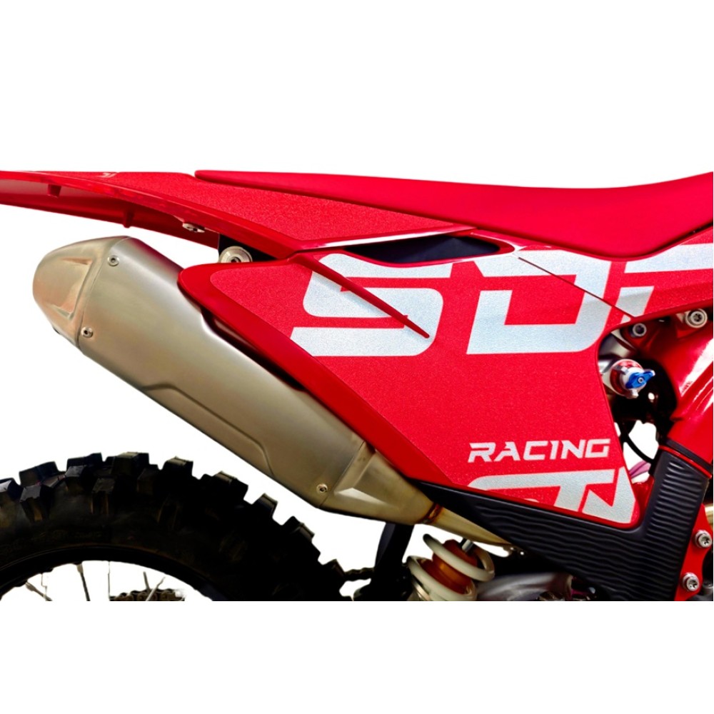 Узкий профиль: Продуманная форма рамы и пластика в зоне контакта с коленями дает райдеру полный контроль над байком в стойке.