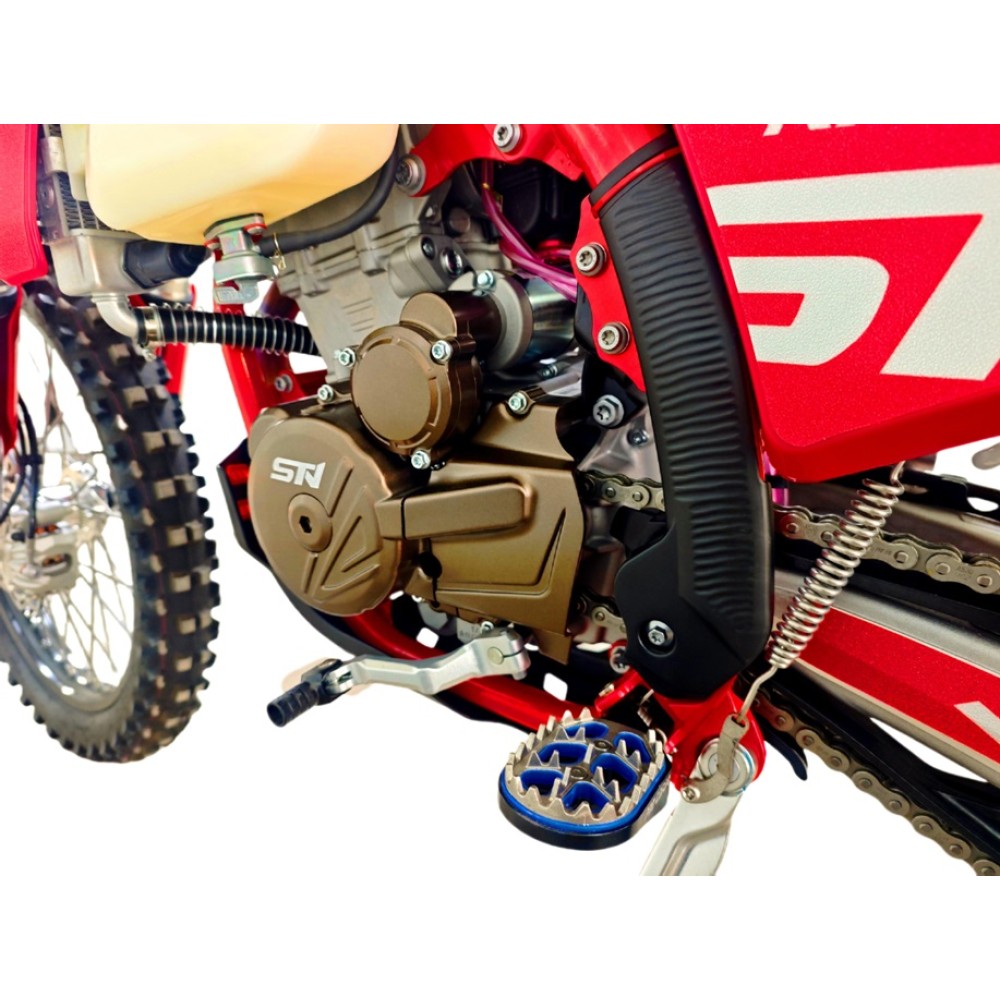 STN G9 PRO YBS300 — это полноразмерный спортивный снаряд, созданный для бескомпромиссного хард-эндуро. Модель построена на базе прогрессивной рамы K10, которая на сегодня является одной из самых удачных платформ по жесткости, развесовке и эргономике. Это выбор райдеров, которым нужен предсказуемый байк для штурма самых сложных рельефов.